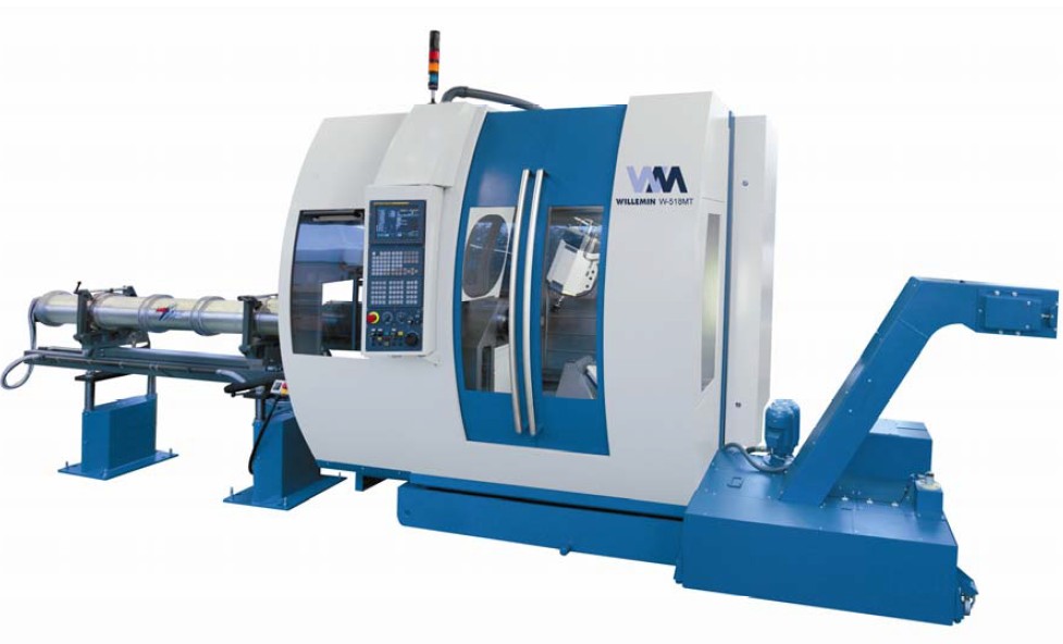 518MT加工中心可配備多種自動(dòng)系統(tǒng),自主操作性極強(qiáng),尤其適用于棒給和零件的裝卸。通過(guò)一個(gè)棒料進(jìn)給裝置或一個(gè)棒料供應(yīng)系統(tǒng),棒料可裝入A軸分度盤(pán)。 可配備各種裝置的518MT加工中心,其超強(qiáng)的靈活性可以裝載長(zhǎng)/短棒料,棒料的直徑可達(dá)65mm,各種裝卸系統(tǒng)可用于卸載成品零件。為了進(jìn)一步加強(qiáng)機(jī)床 的自動(dòng)性,威力銘-馬科黛爾公司可在機(jī)床上配備一支萬(wàn)能操作臂,用于裝載和移動(dòng)零件至/從庫(kù)區(qū),也可用于卸載棒料邊角料。威力銘-馬科黛爾公司可根據(jù)客戶 需求提供特殊的解決方案。