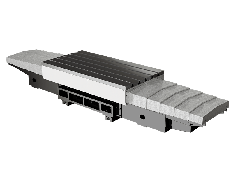 橫向滑臺(tái)及工作臺(tái)均為灰鑄鐵鑄造。橫向滑臺(tái)采用超大跨距的結(jié)構(gòu)設(shè)計(jì),有效增加機(jī)床穩(wěn)定性。
